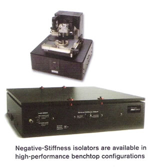 Severe vibration environments: As nano-cquiprnent becomes more prevalent, lab sites are being set up in much more severe vibration-prone environments, such as upper floors of buildings and cleanrooms. Such severe vibration locations are too extreme for pneumatic isolators to do their job effectively. But Negative-Stiffness isolators perform well in such environments, producing much better images and data than can be obtained with even the best high-performance air tables.