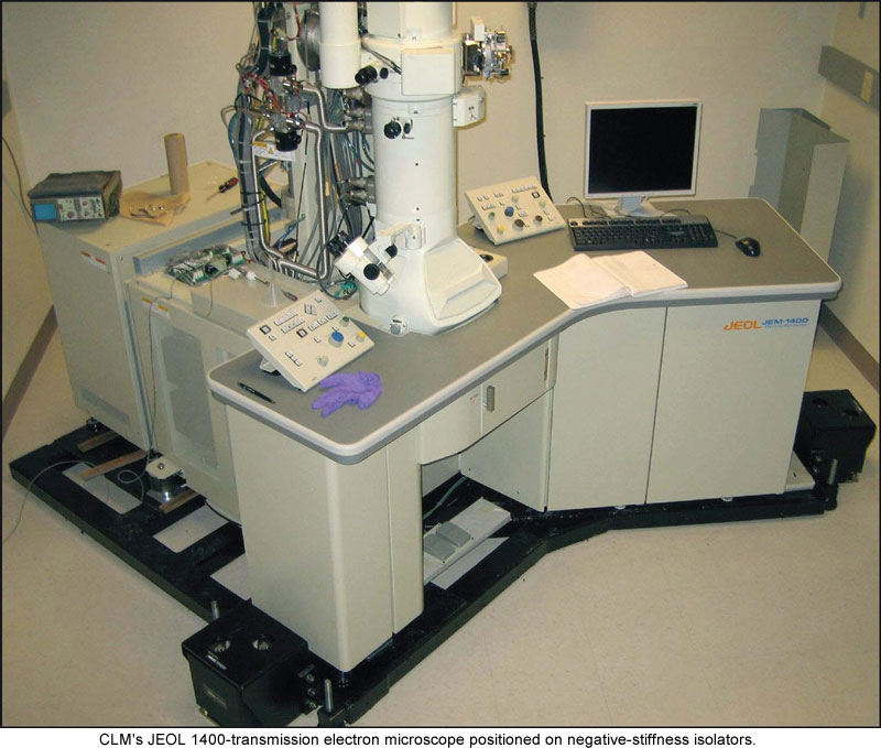 “This was a very difficult vibration isolation problem,” says David Platus, PhD, president of Minus K Technology. “The floor vibrations in the horizontal (X/Y vectors) were out of the manufacturer's specifications in the very low frequency range of about 1.5–2.5 Hz. A 0.4 Hz custom negative-stiffness vibration isolation floor platform was designed for CLM that brought the TEM vibrations well into the required vibration specifications.”