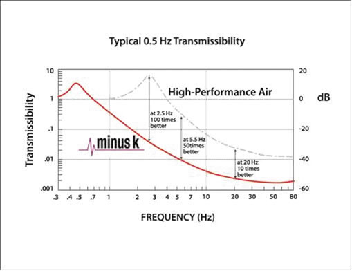 "Since the early 2000s, Minus K Technology, the developer of Negative-Stiffness vibration isolation, has released several vibration isolation platforms for the high-end audio market. These systems have been accepted with high acclaim by audiophiles and high-end audio manufacturers worldwide. Like everything else I did with my system, I researched their vibration isolators thoroughly. I spoke with the inventor and owner of Minus K, Dr. David Platus, discussed my needs, and they customized a vibration isolator that would accommodate my 750-pound turntable, and provide nearly 100 percent vibration isolation for both horizontal and vertical vibrations."